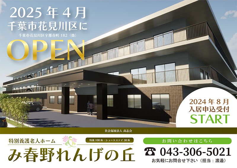 館内の見学も実施 ・場 所 千葉市花見川区宇那谷町182-2 ・お申込み 特別養護老人ホームみ春野れんげの丘 担当 大橋 Tel 043-306-5021 Mail miharuno@rengesou.or.jp